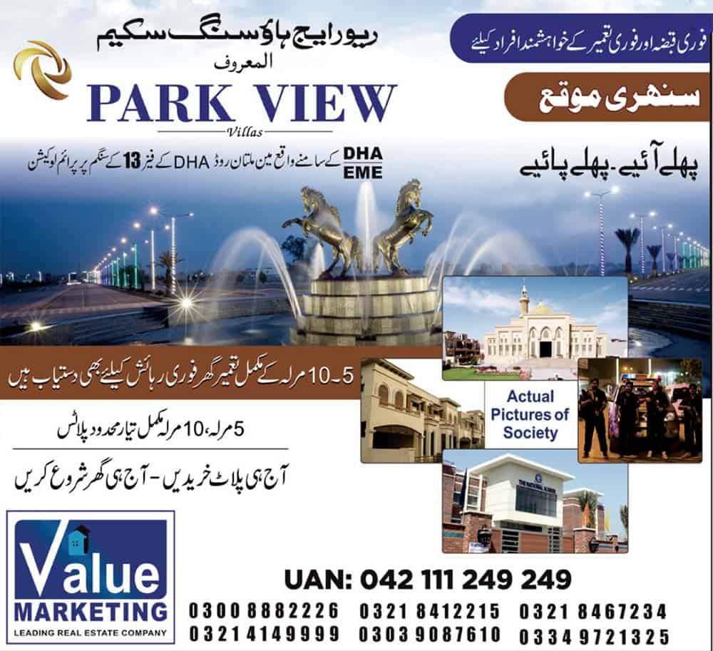 042 111 249 249Park View Villas At River Edge Housing Scheme, 3-KM Thokar Niaz Baig, Multan RoadLahore