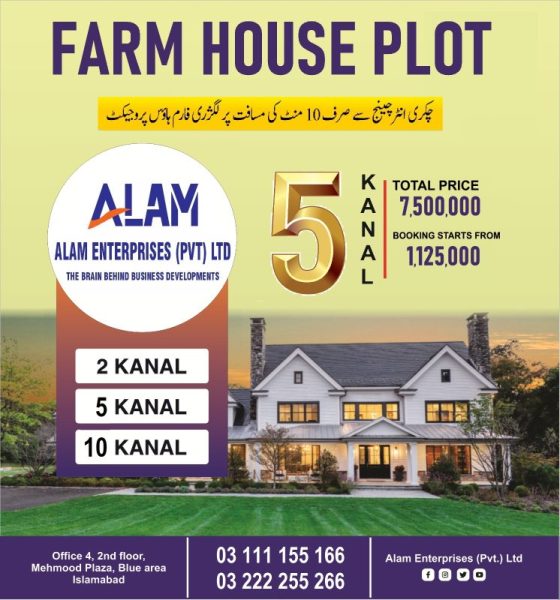 2 & 5 Kanal farm House plots available on 4 years installments.