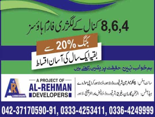 Alrehman Agriculture Farmhouses.4/6/8 Kanal Luxury Farmhouses