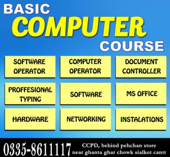 Basic computer Course at ccpd in sialkot Cantt Pakistan
