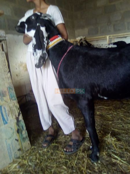 Excellent condition beautiful healthy excellent hight & lenth age 18 month aik bar soey hai 2nd time heat pe nahi I hai pehle sowe PE aik time ka milk average 3kg tha 2 kid deye they first time kids 3 month k ho gae abhi 1kg milk de rahe hai breeder qareeb ho tou foren cross ho jae GI.
