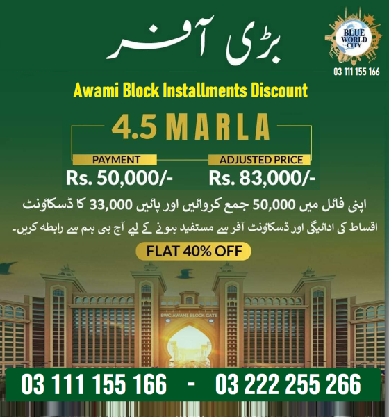 Blue World City Awami Block 4.5 Marla Plot for sale