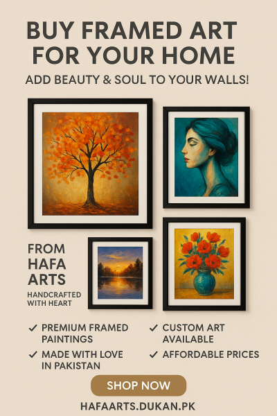 Transform your space with handcrafted, framed art from HaFa Arts – Pakistan’s trusted name in soulful décor. From bold abstracts to serene landscapes, each piece is made with love to bring life to your walls.