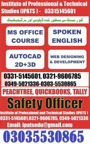 Whatsapp: +923035530865, 03219606785, 3315145601, 03495021336 IPATS Government Recognized Education Zone-KhannaPul Rawalpindi-Islamabad