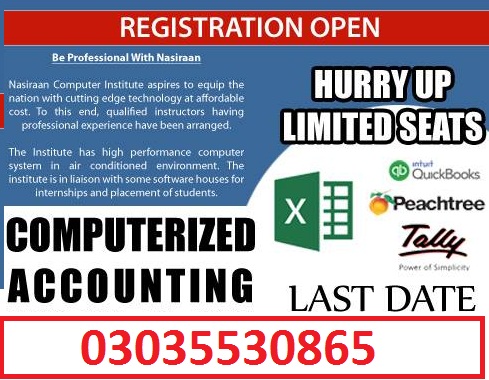 Computerized Accounting Software-Quick Book, Tally, Peach Tree – Islamabad Training WHATSAPP: 03035530865, 03219606785