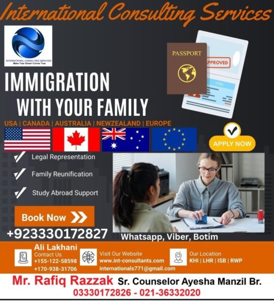 International Consulting Services. We deal in Visit, Family Visit, Study, Work Permit, Business Settlement, Immigration visas