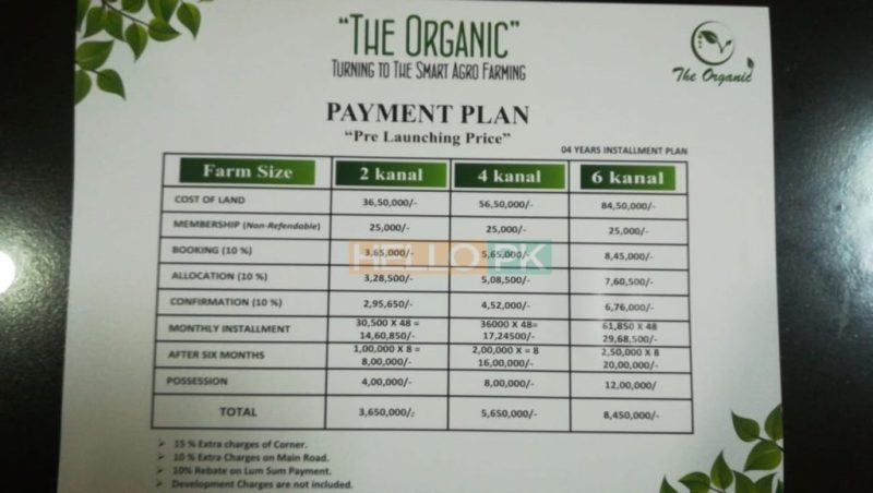 1350000 per kanal in installments and in shape of net cash payment 10 percent discount.