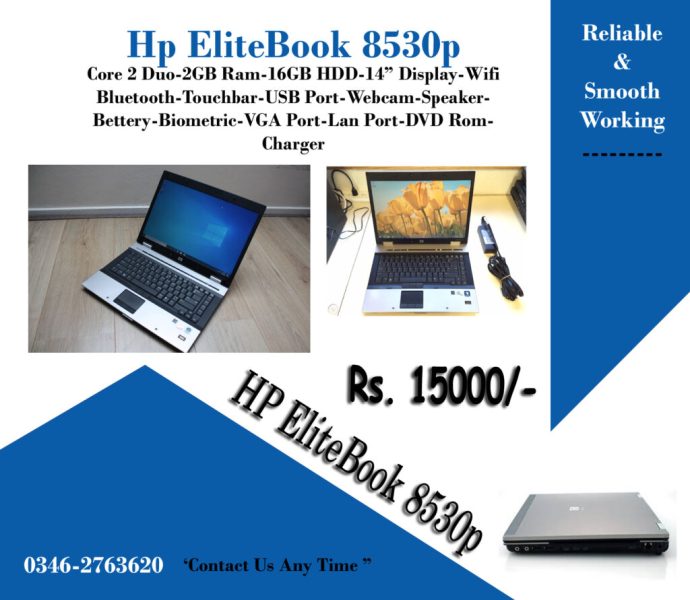 Hp Elitebook 8530p Core 2 Duo, 2Gb Ram,250GB Hard Drive,Wifi, Camera