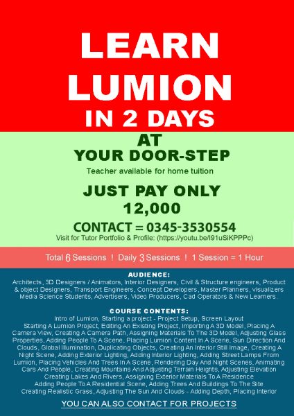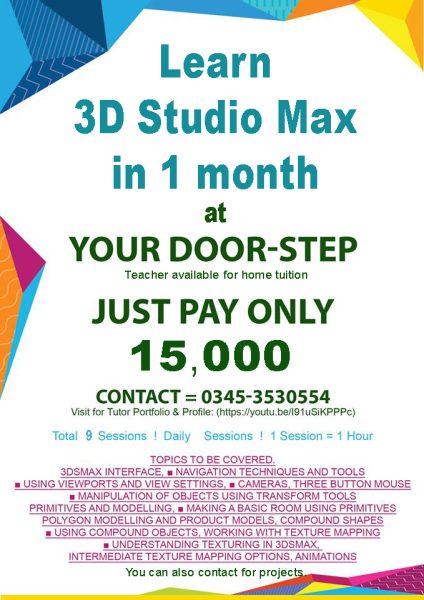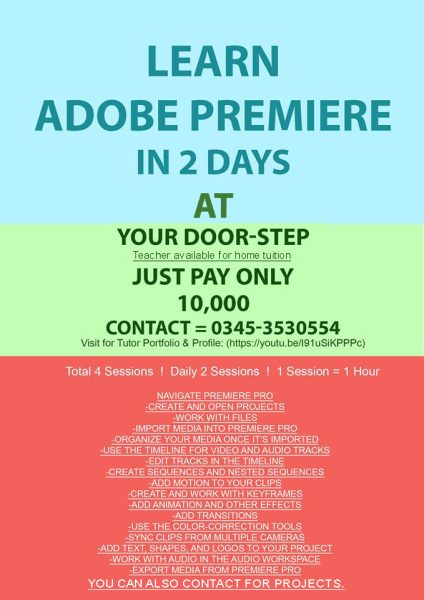 3ds Max, Adobe Premiere, Lumion, Learn Video Editing, AE, Home tuition