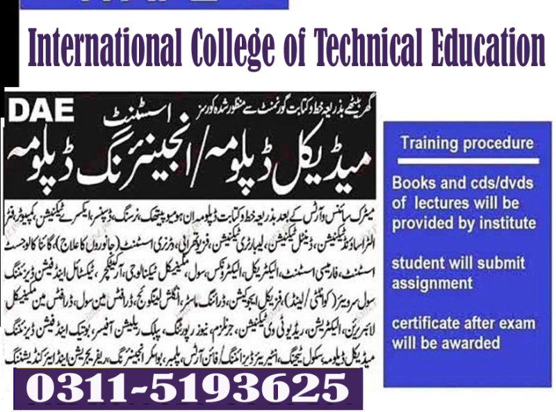Medical Lab Technician Course in Quetta Peshawar Bagh,Medical Lab Technician Course in Quetta Peshawar Bagh,Medical Lab Technician Course in Rawalpindi Pakistan,Medical Lab Technician Course in Rawalpindi Pakistan,Medical Lab Technician Course in Rawalpindi Pakistan Quetta,international college of technical education in Rawalpindi,best training institute in Rawalpindi,An Introduction to Clinical Laboratory Science, including quality control, laboratory math, laboratory safety, care and use of basic laboratory equipment, laboratory settings, accreditation and certification. Upon successful completion of this course the student will: demonstrate laboratory safety; perform laboratory math; and describe quality control. The student will demonstrate the use of basic laboratory equipment; and explain accreditation and certification.Medical laboratory scientists are trained to work in clinical chemistry, hematology, immunohematology, immunology and microbiology, with various sub-specialties in each of these major areas. The program of study is designed to provide the knowledge and technical skills necessary to qualify an individual for work in a diagnostic clinical laboratory, research, or industry. Students complete two years of pre-professional courses in science and general education, and after admission into the Medical Laboratory Science (MLS) professional program, complete two years of medical laboratory science courses. The professional course work includes didactic courses, student laboratory instruction, and clinical experience rotations in medical laboratories.Rawalpindi, Islamabad, Lahore, Karachi