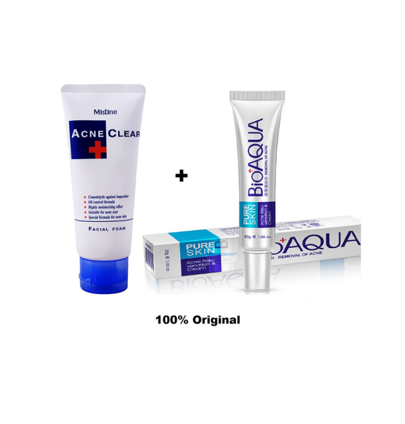 Pack of 2 Mistine Acne Clear Facial Foam and Bioaqua Acne Cr