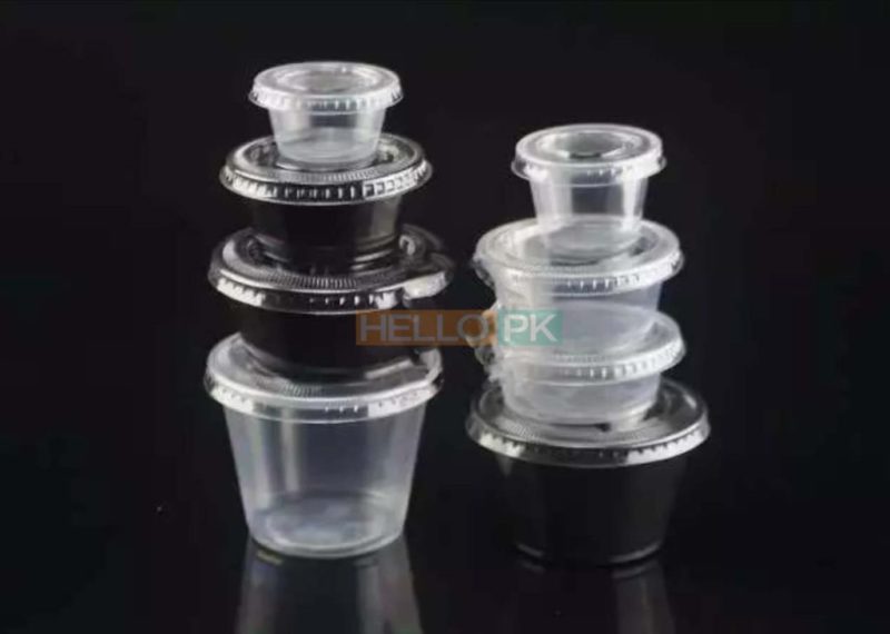 Plastic Diposable CUp and Glass 1 oz and 2 oz Sauce Dip Conatiner