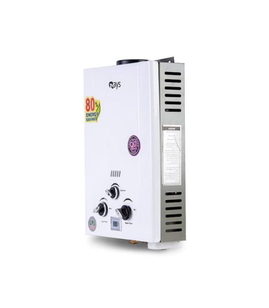 Rays 6 Liters Instant Gas Geyser 6l-pb, Grey bottom cover, Ultra-low water-pressure start system, flame out protection, Battery auto ignition, 80% Energy Saving.