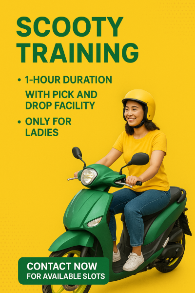 This service is only for ladies in Karachi. You can avail service to learn Scooty riding with full confidence in just five classes. Contact 03353807201