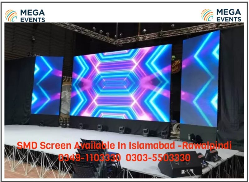 we provides high quality SMD screens/ video walls for events on very reasonable rates. SMD screens are being used to brand events and décor events. Using SMD screens in events in Islamabad is now days in trending , there are very less chances that any event happens with out using SMD screens