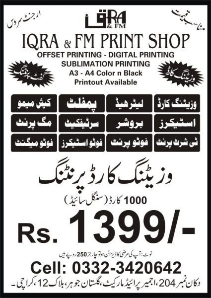 Location : Shop No. 204 Ajmer Pride Market Gulistan-e-Jauhar Block-12, Karachi